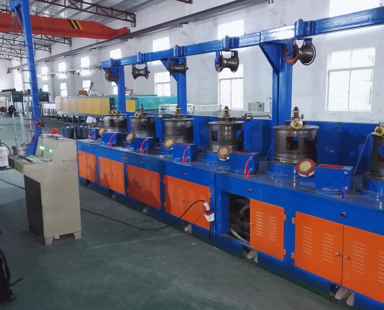 直進(jìn)拉絲機(jī)將粗口徑的盤條經(jīng)過(guò)多道次拉拔后,變成細(xì)口徑的金屬絲,拉絲機(jī)設(shè)備由放卷、多級(jí)模具拉伸、收卷組成;比如一個(gè)